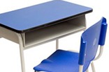 Mesa con estructura en tubo redondo 7/8 calibre 18, portalibro tipo cajón en lámina metálica cal. 22.